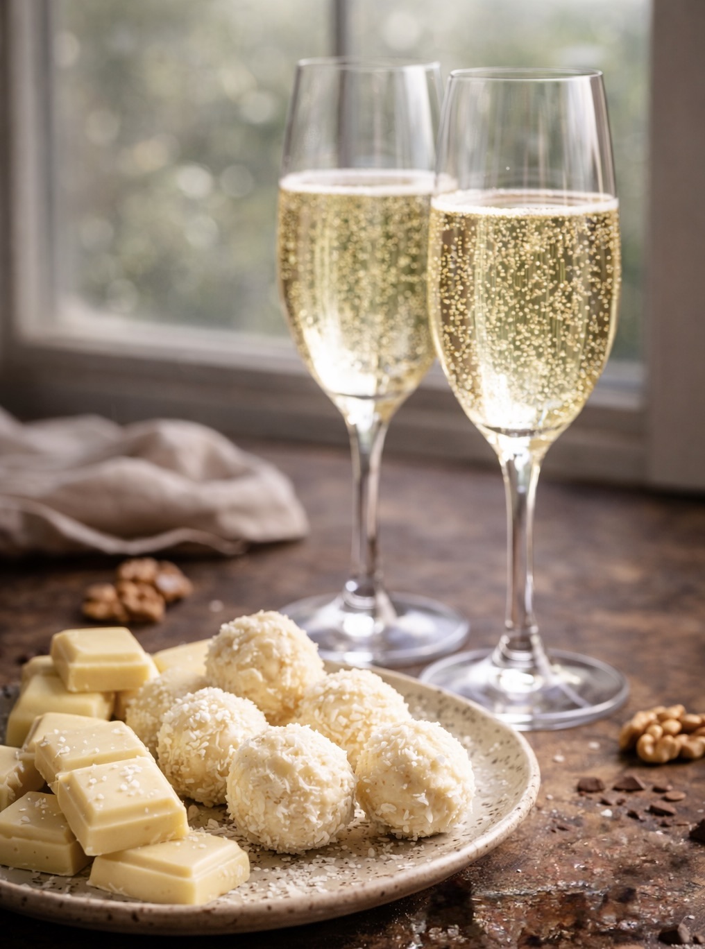 White chocolate is one of those rare moments where sparkling wine quietly steals the spotlight.